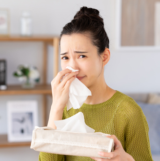目の表面に花粉やダニ等のアレルゲンや花粉が付着し、結膜に炎症を起こす病気をアレルギー性結膜炎といいます。アレルギー性結膜炎の対策は、原因となるアレルゲンを避け、可能な限り触れないことが一番のポイントです。治療の基本としては、点眼薬で症状を抑えます。また、花粉の飛散時期の前から治療を始める「初期療法」も効果的です。シーズンを快適にすごせるよう早めに受診することが重要です。